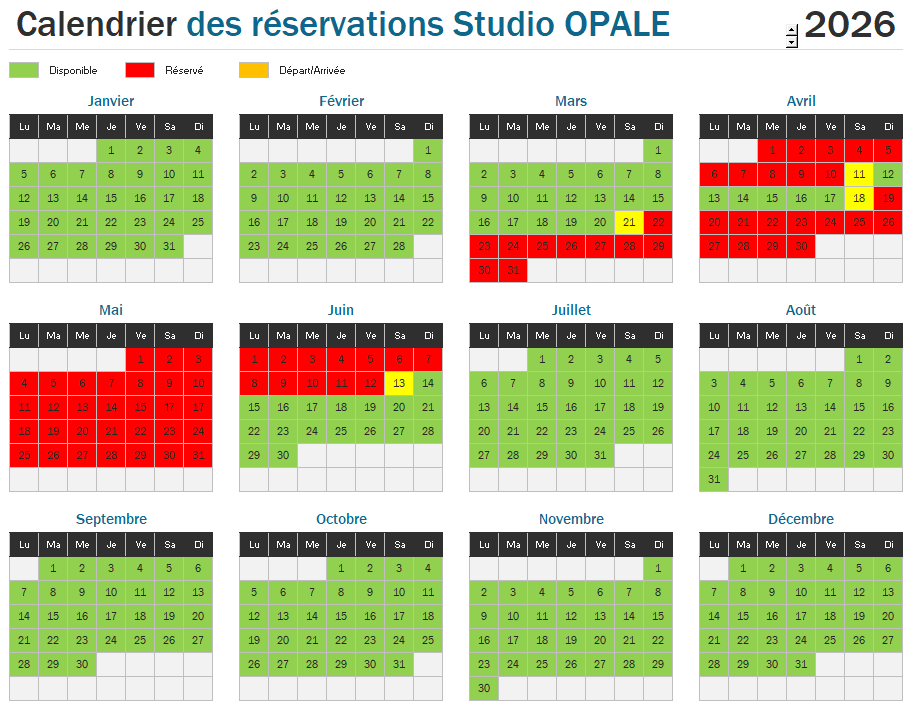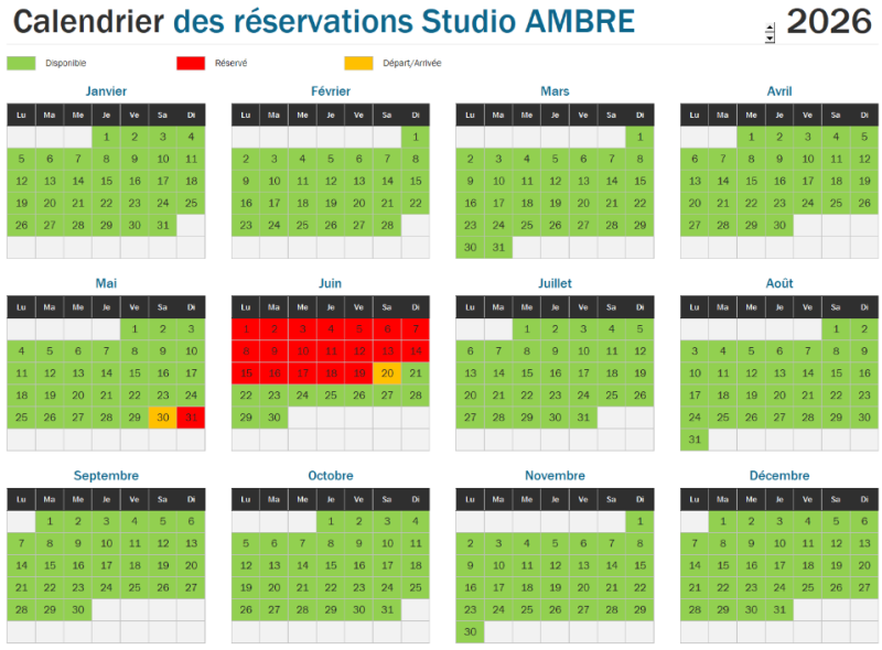 Merci de me dire à quoi correspondent les différentes couleurs sur les calendriers des différents hébergements. Cordialement